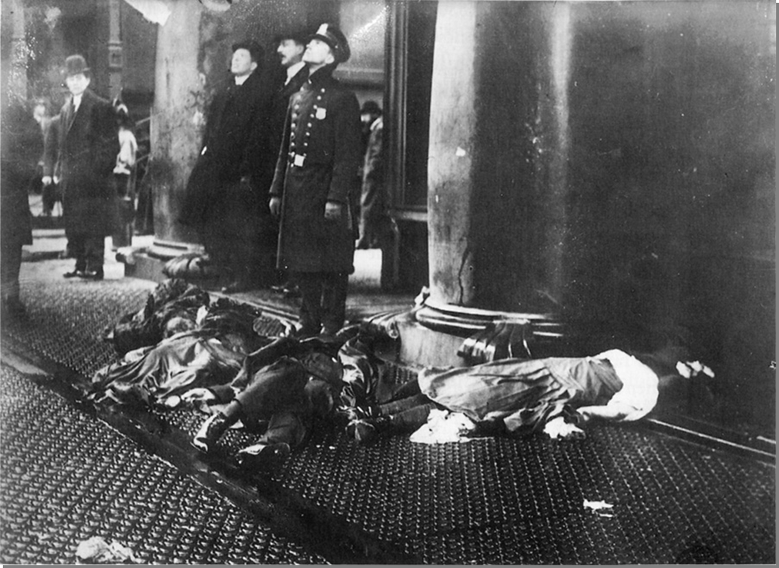 The shirtwaist workers won, and in part, the success of the strike made the garment union one of the most powerful in the AFL. But the victory was limited. Over 300 companies accepted the union's terms, but others refused to go along. The young women went back to work amid still oppressive and unsafe conditions. That became dramatically obvious on Saturday, March 25, 1911, when a fire broke out on the eighth floor of the ten-story loft building housing the Triangle Shirtwaist Company near Washington Square in New York. There had been several small fires in the factory in previous weeks, so no one thought much about another one. But this one was different. Within minutes, the top three floors of the factory were ablaze. Many exit doors were locked. The elevators broke down. There were no fire escapes. Forty-six women jumped to their deaths, some of them in groups of three and four holding hands. Over 100 died in the flames.